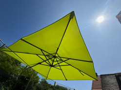 Der Sonnenplatz am Slot lädt am Nachmittag zum Verweilen ein… und der Sonnenschirm schützt, dies ist die Anleitung für den Schirm.
