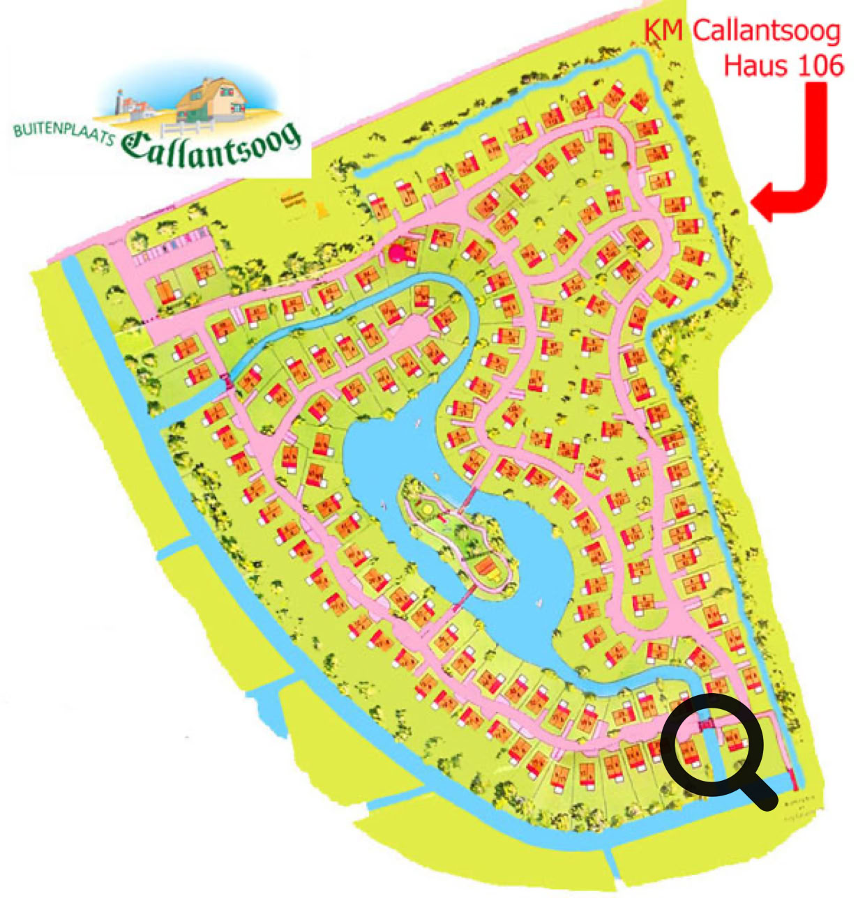 Unser Haus befindet sich in der Anlage „Buitenplaats“, am Rande von Callantsoog. Tulpenfelder und Dünen sind vor der Haustür. Im Ort sind mit Einkaufsmöglichkeiten, Fahrradverleih, Bäcker und am Strand sind Strandcafes vorhanden.