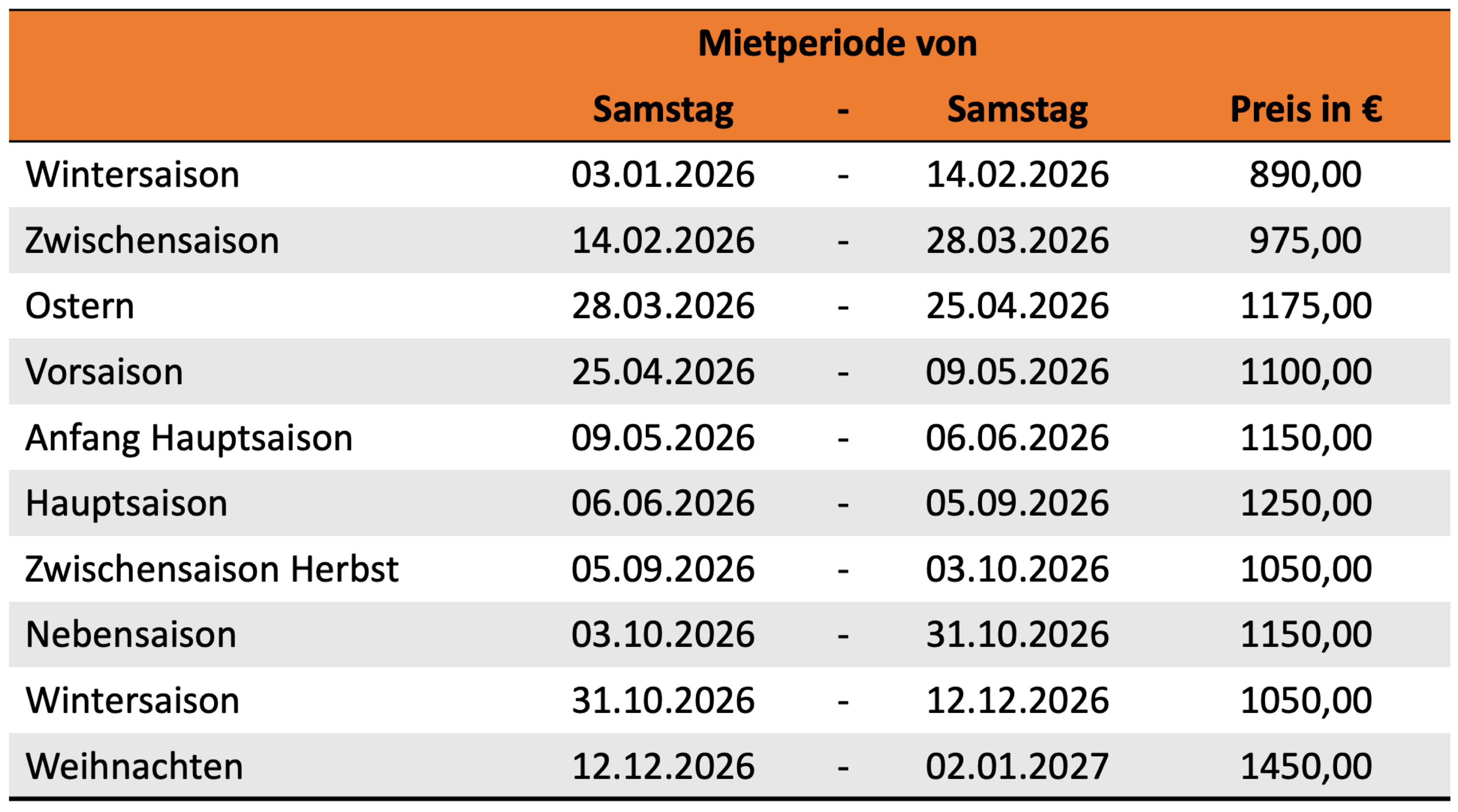 Die Erhöhung der Preise in 2026 liegt in der Erhöhung der Umsatzsteuer für Vermietung von 7% auf 21%. Viele Eigentümer sehen nun von einer Vermietung ab.